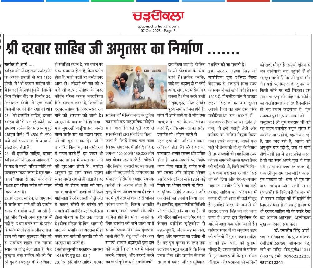 श्री दरबार साहिब जी अमृतसर का निर्माण: एक वैज्ञानिक दृष्टिकोण