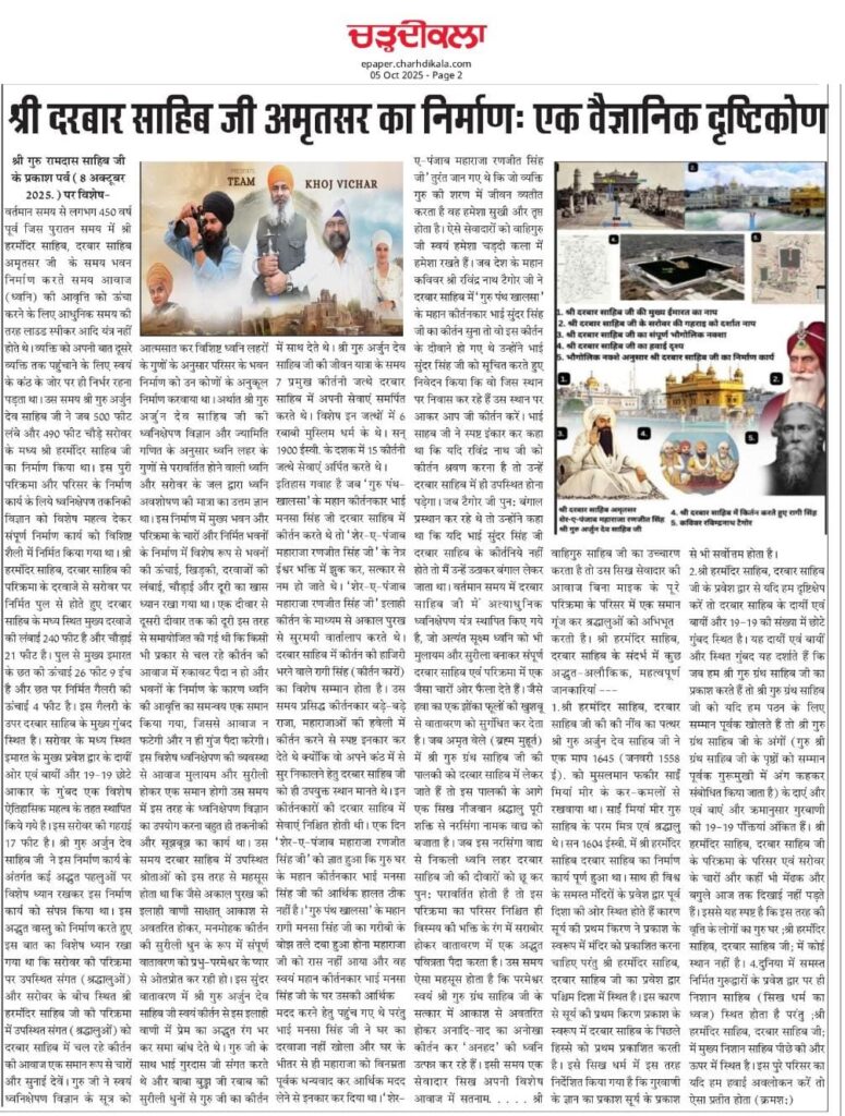 श्री दरबार साहिब जी अमृतसर का निर्माण: एक वैज्ञानिक दृष्टिकोण