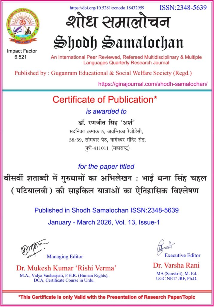 बीसवीं शताब्दी में गुरुधामों का अभिलेखन: भाई धन्ना सिंह चहल (पटियालवी) की साइकिल यात्राओं का ऐतिहासिक विश्लेषण