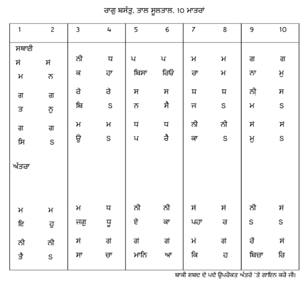ਰਾਗ ਬਸੰਤੁ ਮਹਿਲਾ ੯ ਵਿਚ ਸ਼੍ਰੀ ਗੁਰੂ ਤੇਗ ਬਹਾਦਰ ਸਾਹਿਬ ਜੀ ਦੀ ਬਾਣੀ