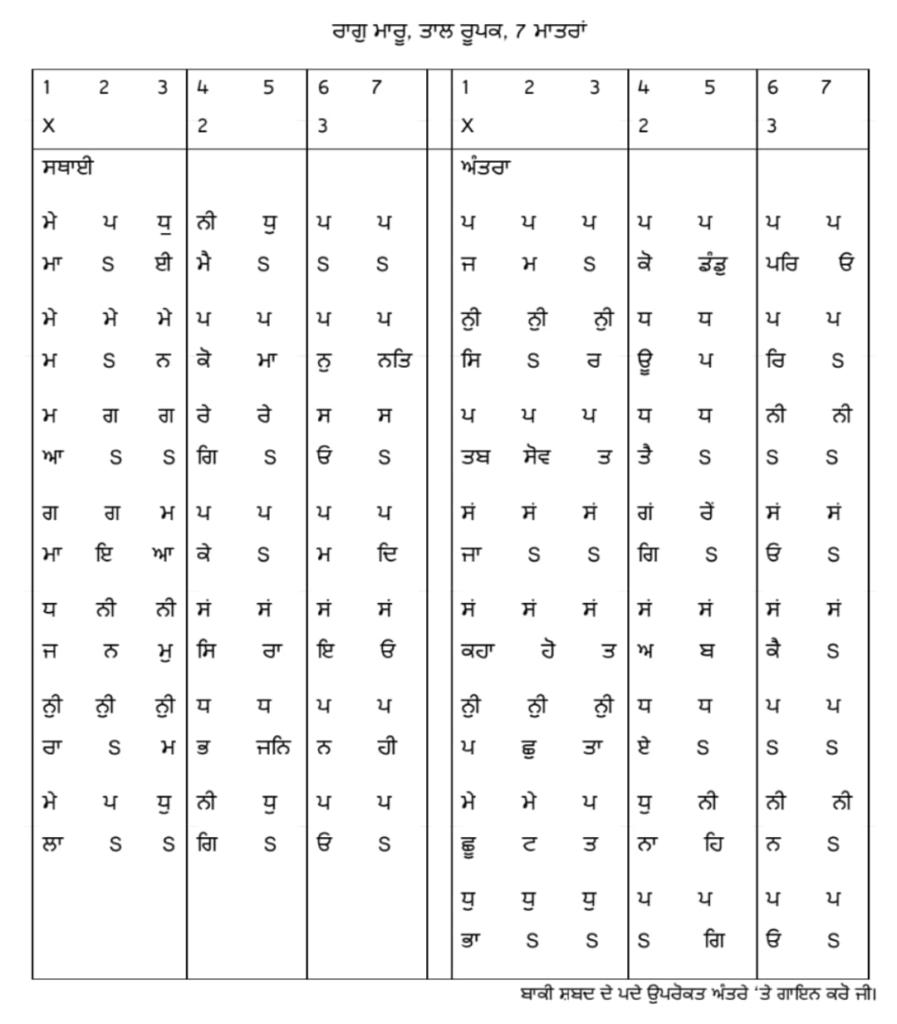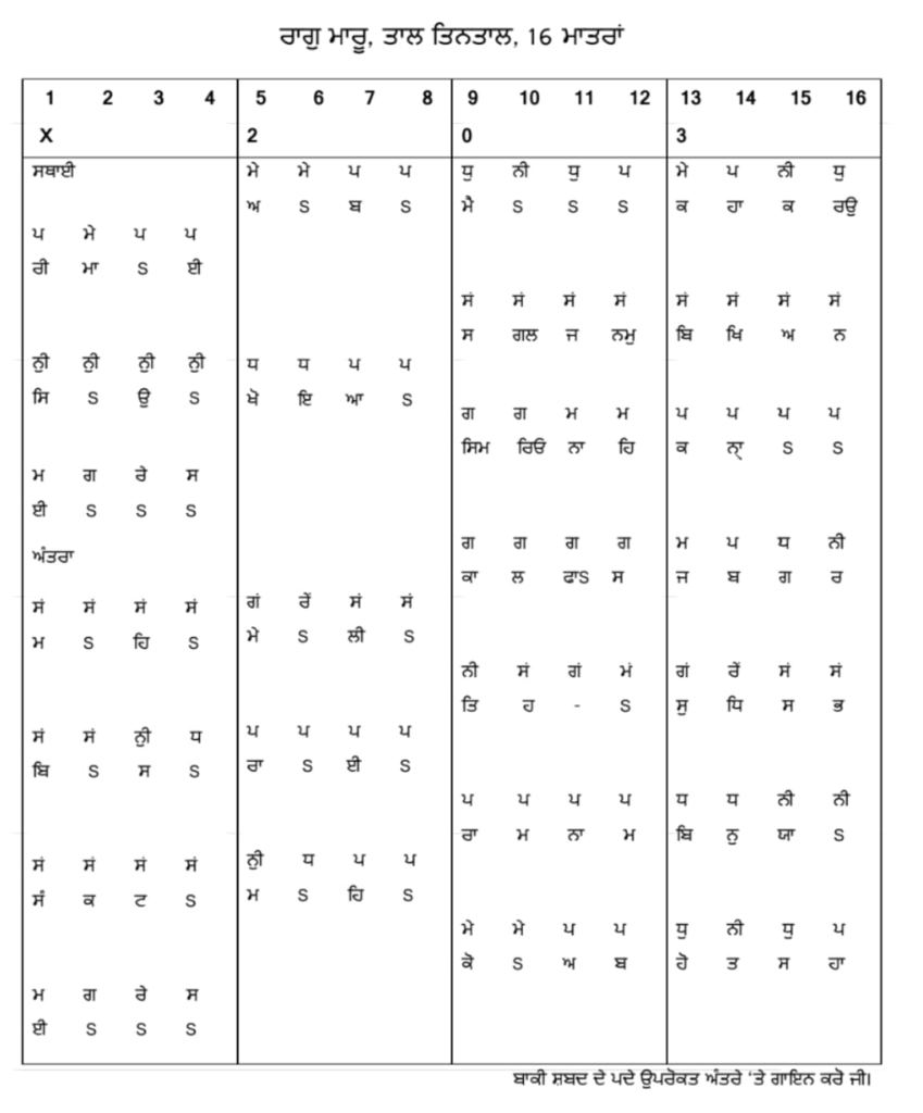 ਅਵਰੋਹ —————————— ਸਂ ਨੀੁ ਧ ਪ, ਮੇ ਧੁ ਨੀ ਧੁ ਨੀ ਧੁ ਪ, ਮ ਗ ਰੇ ਸ