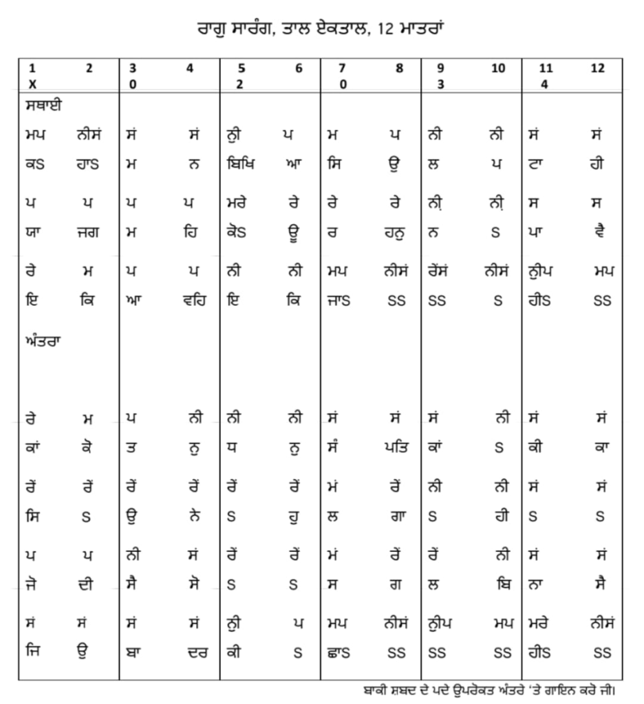ਰਾਗ ਸਾਰੰਗ ਮਹਿਲਾ ੯ ਵਿਚ ਸ਼੍ਰੀ ਗੁਰੂ ਤੇਗ ਬਹਾਦਰ ਸਾਹਿਬ ਜੀ ਦੀ ਬਾਣੀ